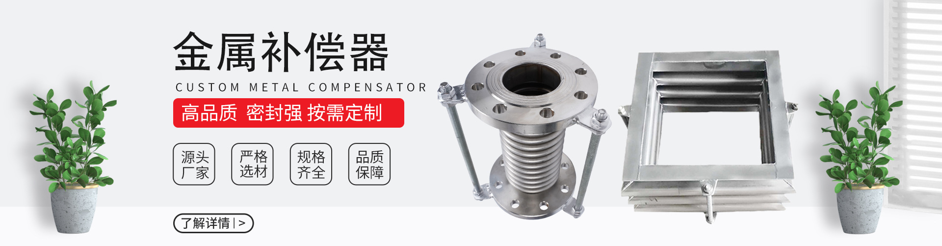 專注從事設計、生產各種金屬補償器、非金屬補償器、旋轉補償器、套筒補償器、波紋補償器、金屬波紋補償器、軸向補償器、球形補償器、厚壁補償器等補償器(膨脹節(jié))系列產品;金屬軟管;四氟軟管;電站風門;雙法蘭傳力接頭等管道設備。